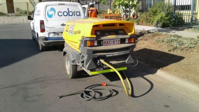 压缩机通过软管(同样由阿特拉斯·科普柯租赁公司智利分公司提供)连接至管道。在将管道安装至地下之前,先用管径大小的海绵对其进行压力清洁。第二步,压缩空气被用于吹干管道以及清除管道内残留的杂物,以确保天然气的正常输送。